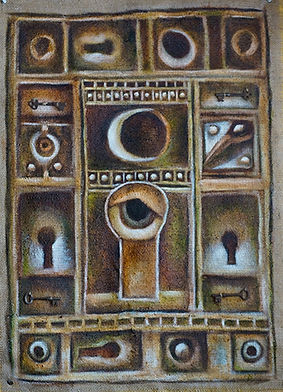 This was one of my first pieces to use burlap as a canvas. Its frayed, raw edges mirror the "unhappy consequences" and the disintegration of Lot’s wife into a pillar of salt—now a fragment, as if recovered from a ruin, reinforcing the idea of these women as "glistening tokens" of historical trauma.